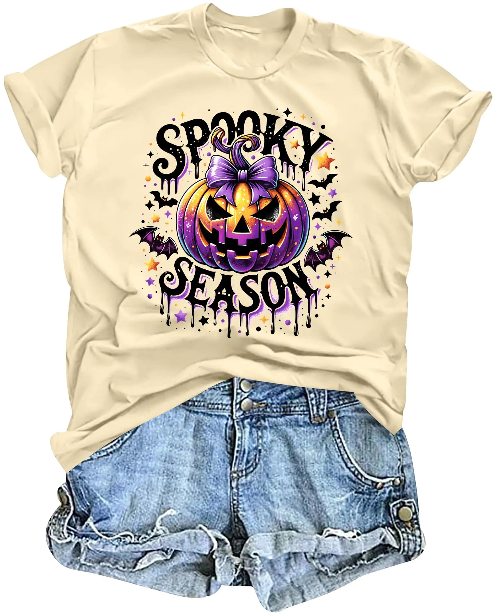 LAZYCHILD Halloween Shirt Women Leopard Bow Pumpkin Graphic Tees Funny Cute Halloween Short Sleeve Fall Tops